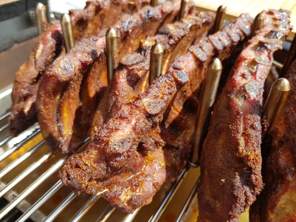 Der Aufbau war mit Anleitung wirklich einfach. Nur ist der Grill verdammt schwer. Gestell aufbauen und den Korpus rein heben. Alles wirklich sehr wertig. Bei meiner Variante konnte ich dann noch aussuchen, welche Abdeckung ich für oben möchte. Am Anfang hatte ich die Edelstahl-Variante verwendet, nach einem Monat wieder die schwarze, weil das Edelstahl nach mehrmaligem Räuchern doch nicht so lecker aussah.